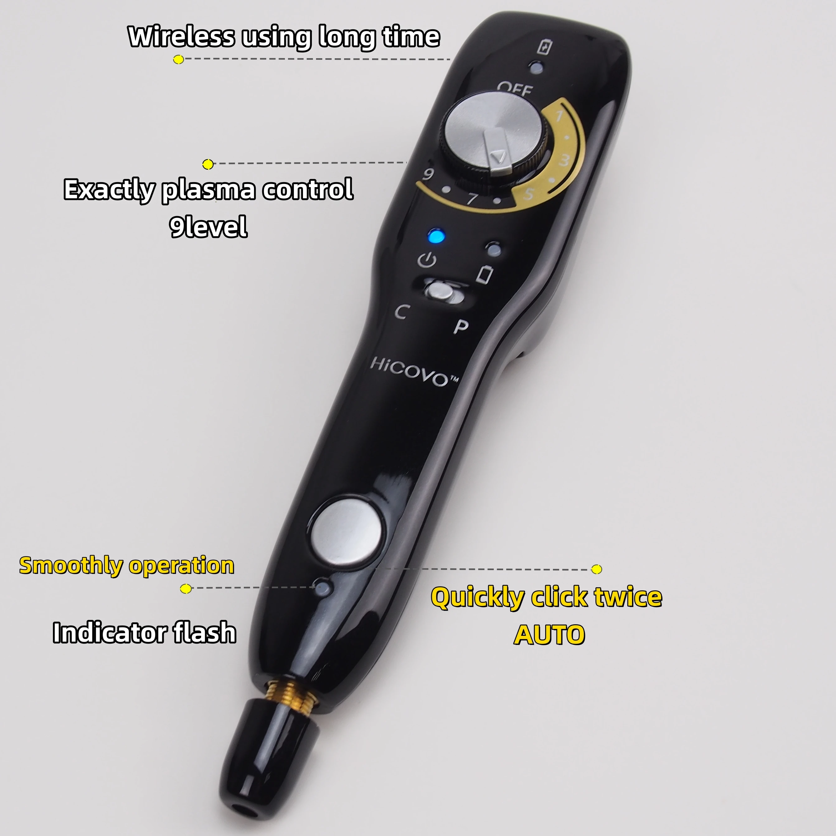 Stylo à plasma professionnel Hicovo pour l’élimination des verrues, des taches brunes, des vergetures, du rajeunissement cutané par fibroblastes, resserrement cutané à froid, appareil facial automatique
